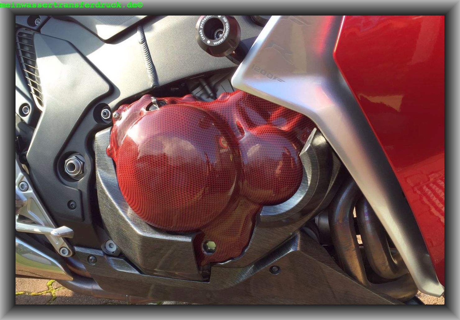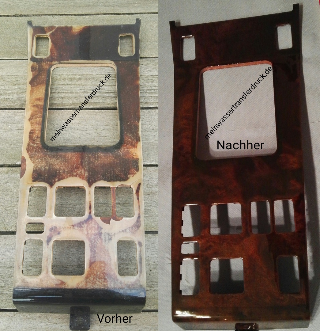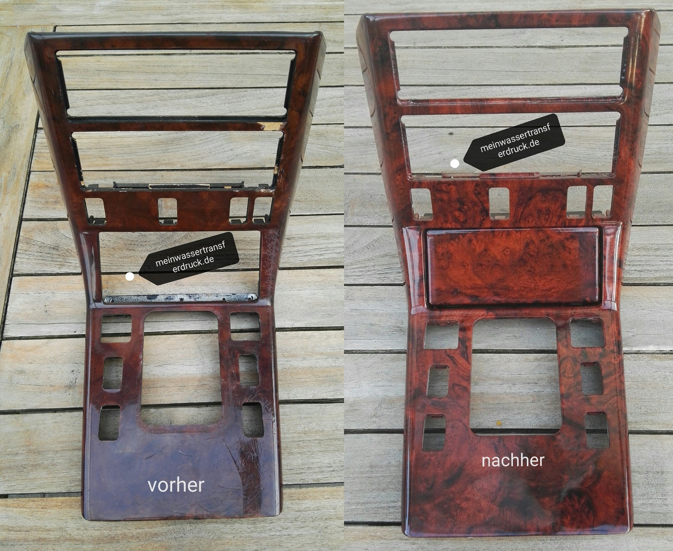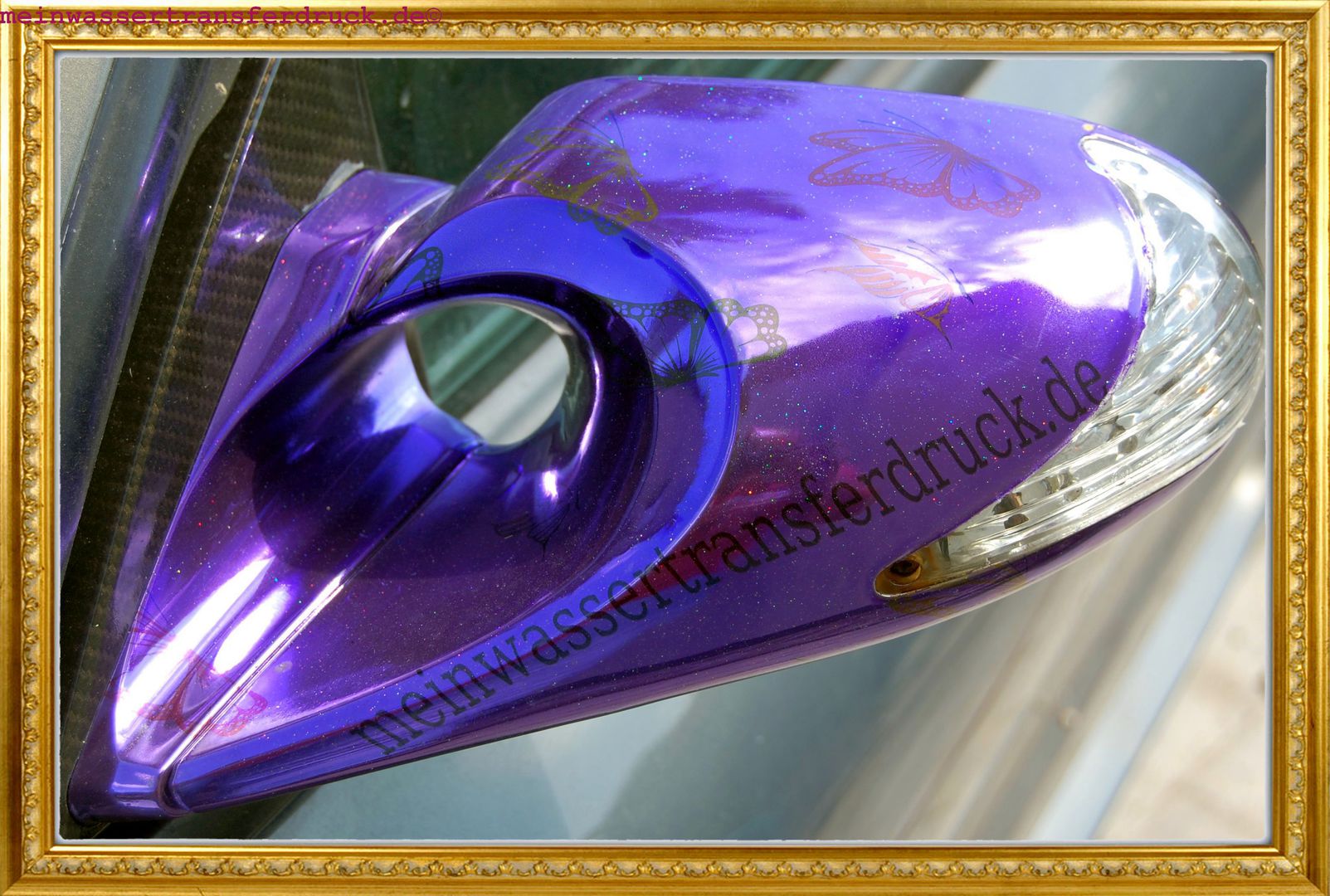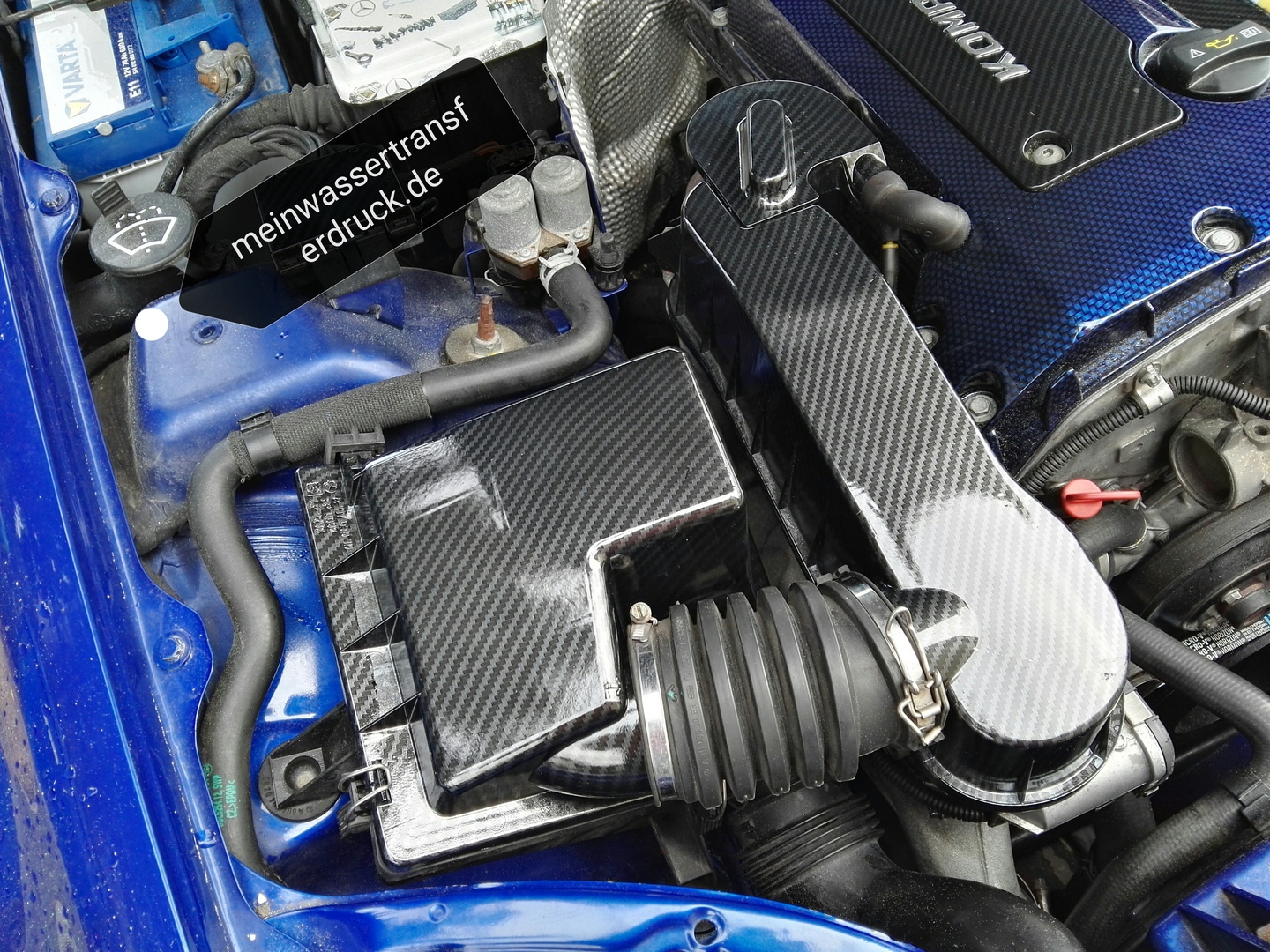 Das zu beschichtende Teil wird entsprechend vorbehandelt und mit einem Base-Coat entsprechend der ausgewählten Folie lackiert. Anschließend erfolgt der eigentliche Tauchvorgang. Hier wird die gewünschte Designfolie auf die Wasseroberfläche gelegt und nach einer definierten Zeit aktiviert, so dass dann anschließend Ihr Teil getaucht werden kann. Durch den Wasserdruck schmiegt sich der Dekorfilm gleichmäßig an das Teil. Nach dem Tauchvorgang wird es einer gründlichen Spülung unterzogen, so dass alle Folienreste entfernt sind. Nach einer Trocknungszeit bekommt Ihr Teil die Finishpolitur. Es wird in mehreren Schichten mit einem 2K-Klarlack lackiert und somit ist es geschützt und erstrahlt in Hochglanz in Ihrem neuen Design.